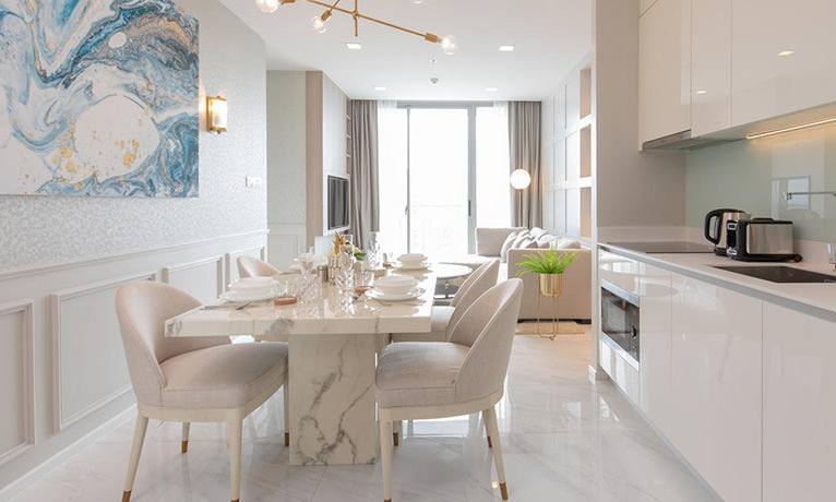 Interior design and furniture depend on the owner. There is a wide range of room types, from studios to 3-bedroom units, though the spaces are not large.