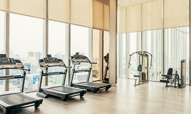 On the top floors there are a swimming pool and fitness center. Other amenities include sauna, lounge, cinema room, children’s play area, golf simulator — a rich set of facilities.
