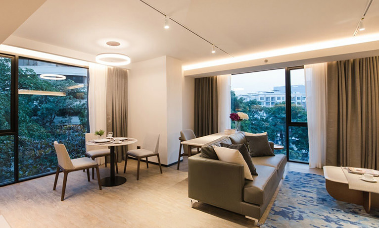 The interiors and furnishings have a luxurious feel, and the units feature spacious layouts.