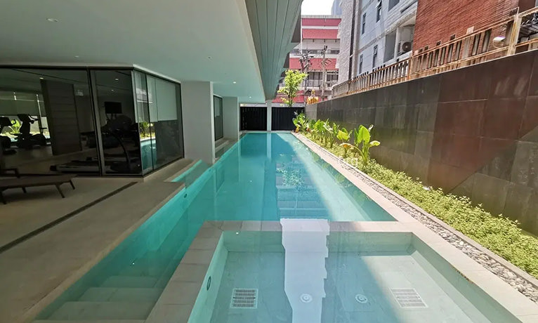 - 1st Floor: Swimming pool, fitness center, indoor children’s play area